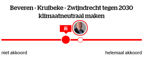 Hoewel het nog even wachten is op het bestuursakkoord en het beleidsplan BKZ, durven wij ervan uit te gaan dat de klimaatambities van de nieuwe bestuursploeg even hoog, zoniet hoger liggen dan die van de voormalige bestuursploeg van Zwijndrecht. Immers waren zowel WSS als N-VA tijdens de verkiezingsstrijd akkoord tot zeer akkoord met de stelling dat de gemeente klimaatneutraal moet zijn tegen 2030. Wij denken dat dat praktisch niet mogelijk is, maar wij juichen de ambitie wel toe.