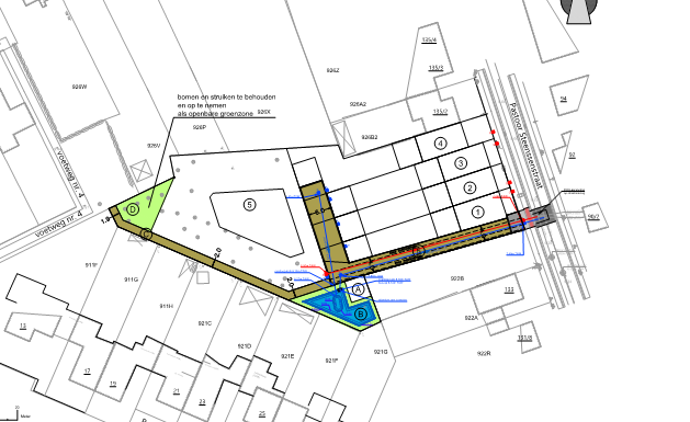De Technische Dienst Wegen en Groendienst deelden mondeling mee dat het openbaar domein eerder moet worden verkleind dan uitgebreid, doordat de wadi op lot B louter nut zal hebben voor de 4 particuliere kavels en dus door de particuliere eigenaars moet worden onderhouden.