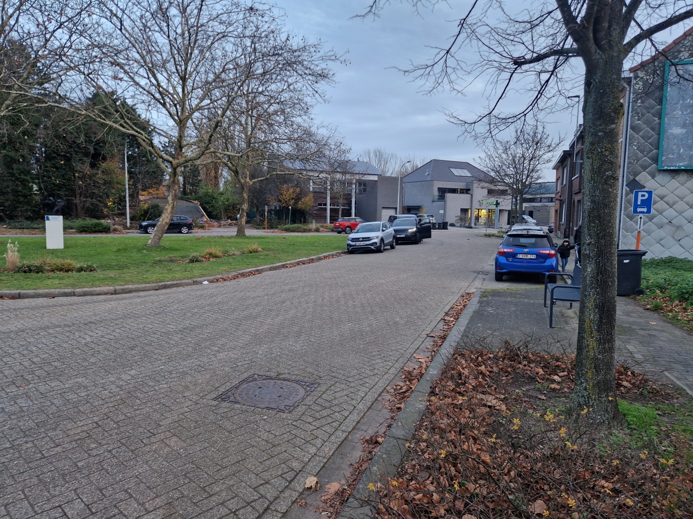 Het pleintje heeft geen verkeersborden die parkeren rond het pleintje verbieden en ook geen richtingsborden die een verplichte of verboden rijrichting aanduiden.