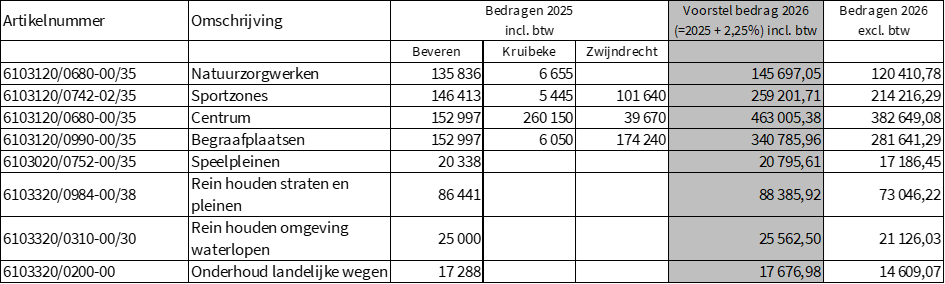 Het betreft de volgende werkzaamheden die gedurende 2026 kunnen worden uitgevoerd met de volgende voorziene (aangepaste) bedragen: